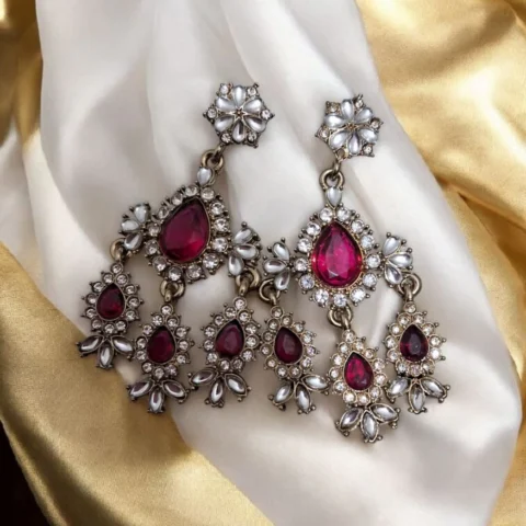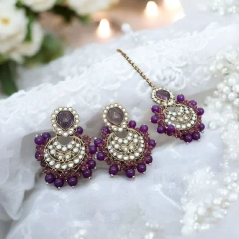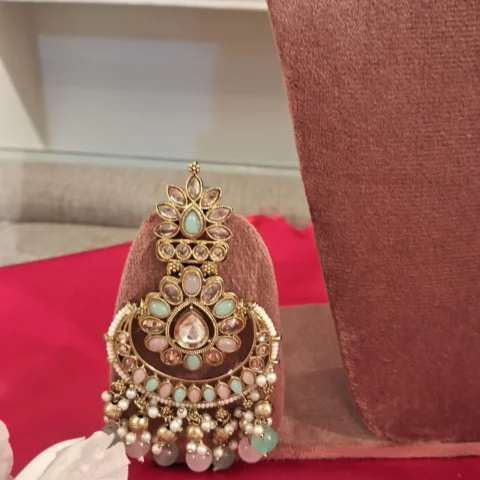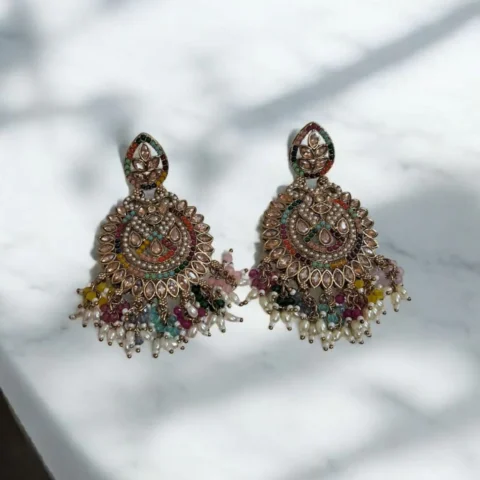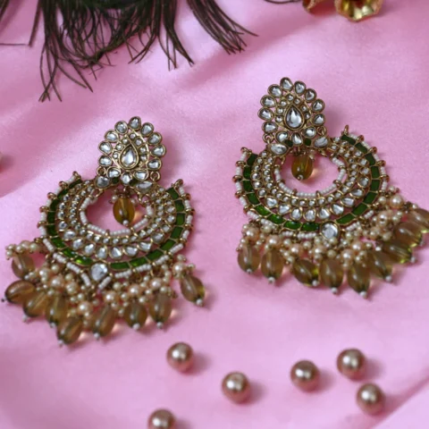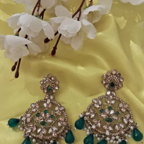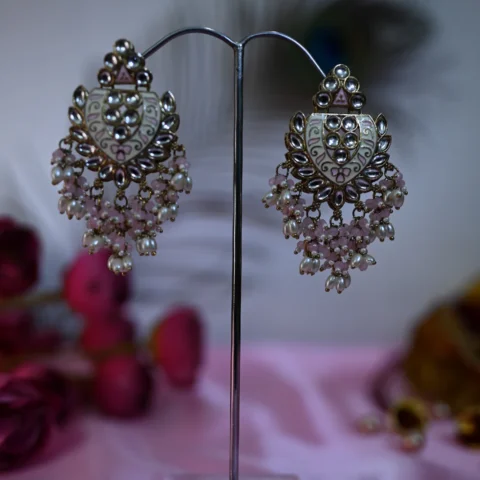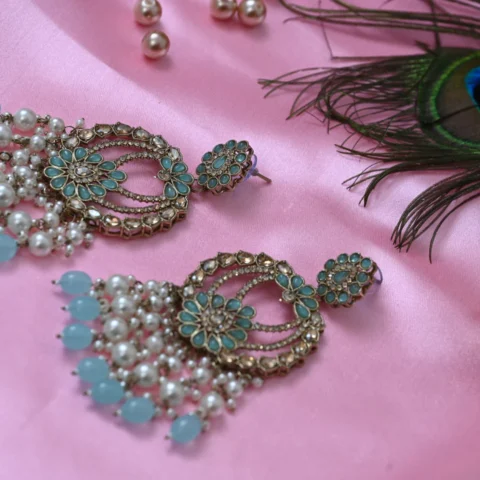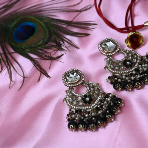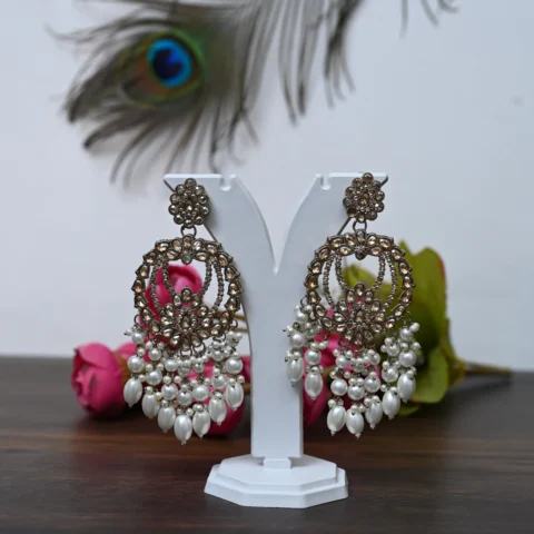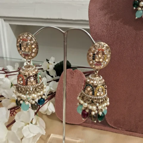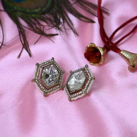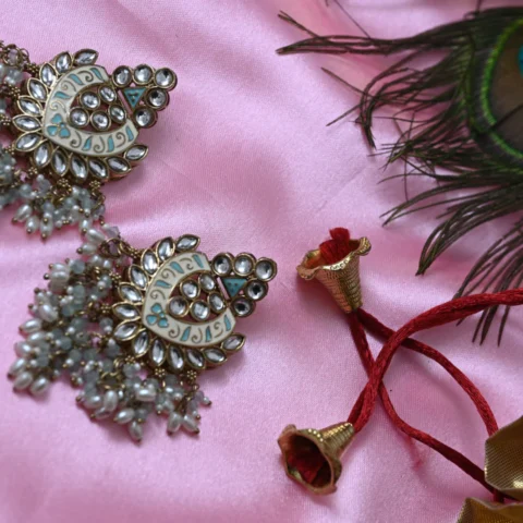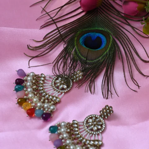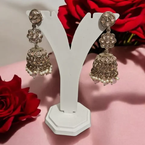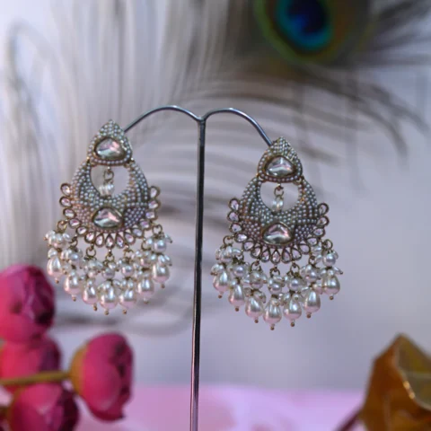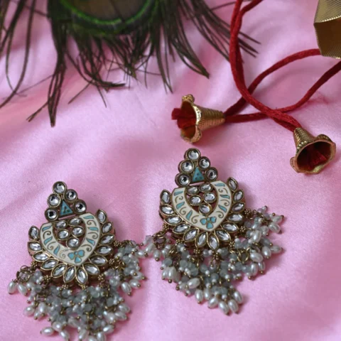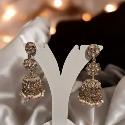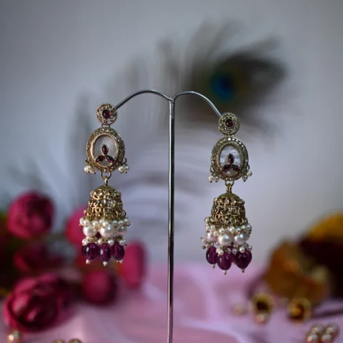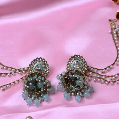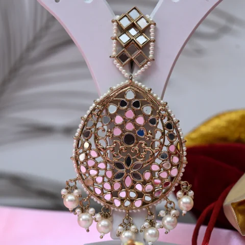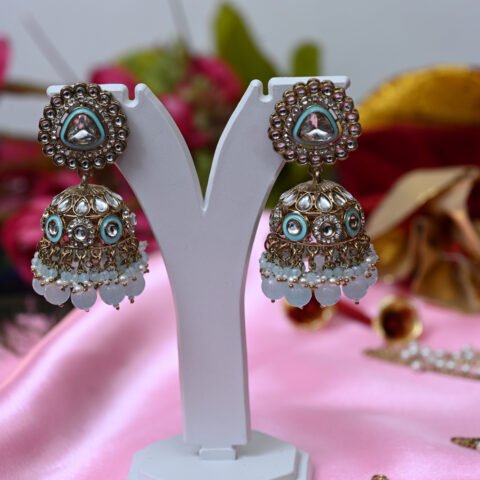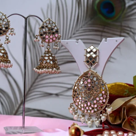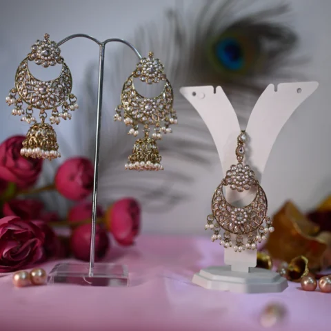 Noor Jahan’s Mirror pearl Jhumkis with Tikka