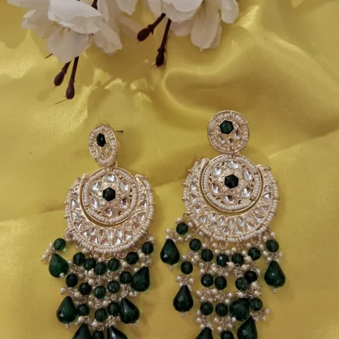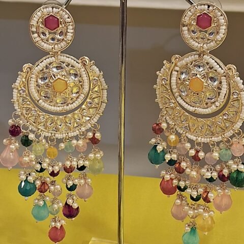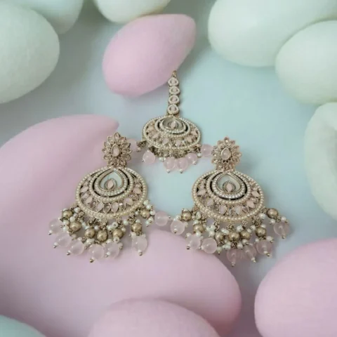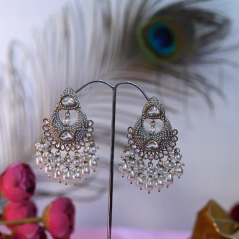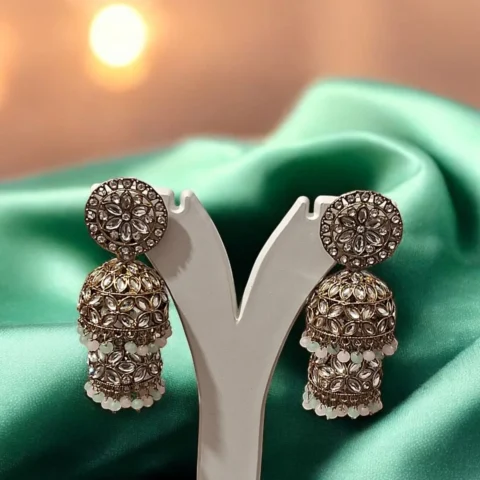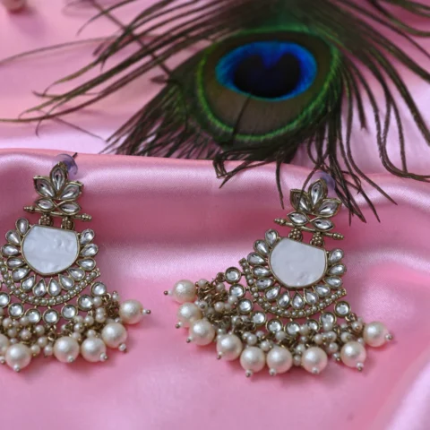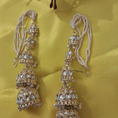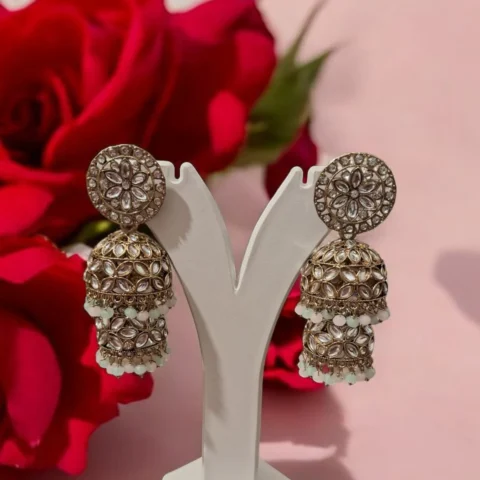 Maharani Noor White Chandbalis Jhumkis with Tikka