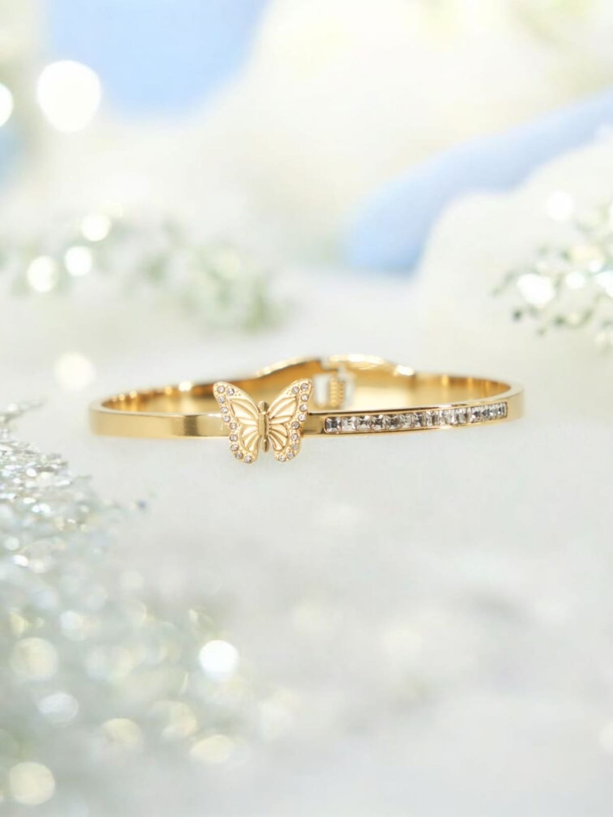 Be the first to review “Butterfly Whisper Bracelet – Crystal Bar with Golden Charm” Cancel reply