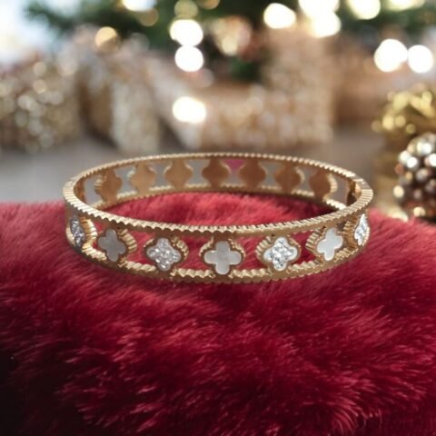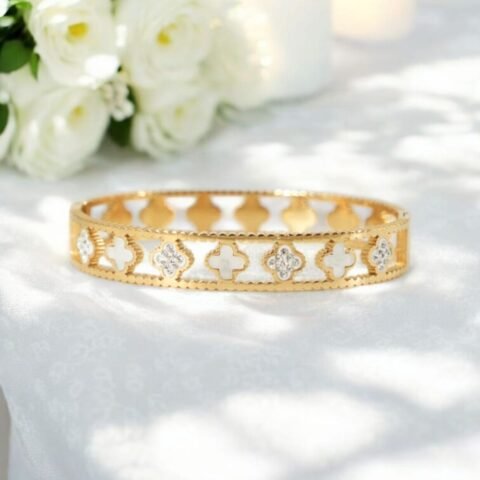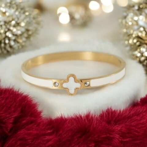 White Enamel Clover Bracelet – Anti-Tarnish Golden Touch