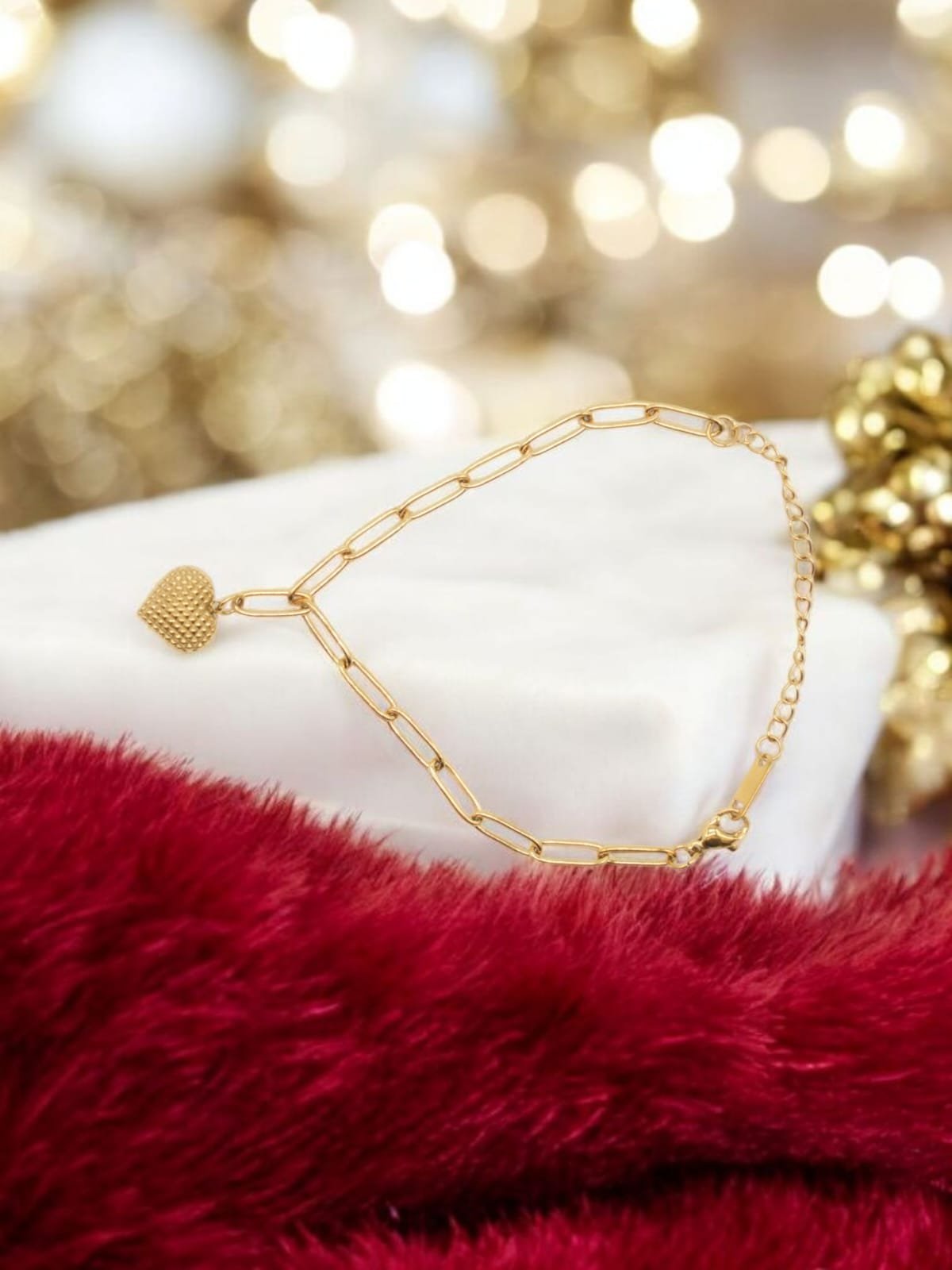 Be the first to review “Golden Linked Heart Charm Bracelet – Elegant Minimal Style” Cancel reply