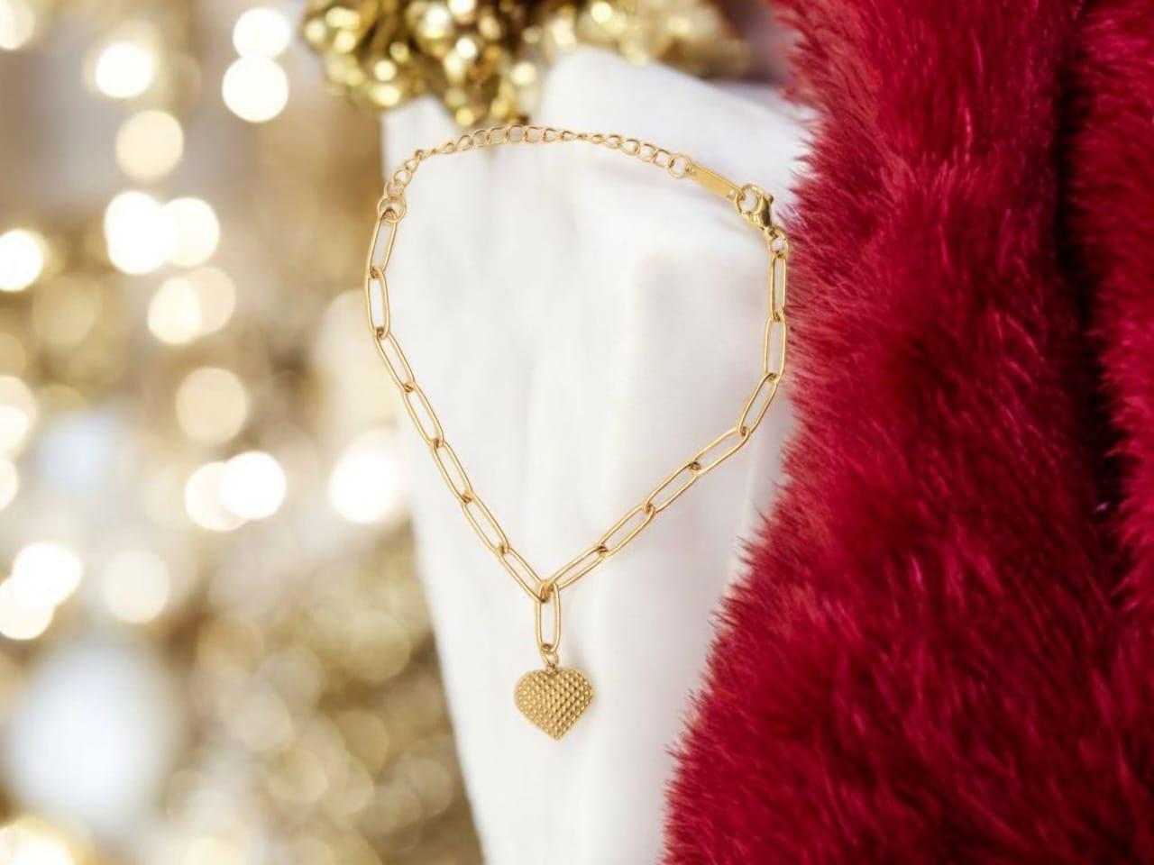 Add a hint of charm to your everyday look with this Golden Linked Heart Charm Bracelet. Designed with sleek elongated links and a textured heart charm, this bracelet strikes the perfect balance between simplicity and style. Lightweight and versatile, it layers beautifully with other pieces or stands out solo. A must-have for minimal jewelry lovers!