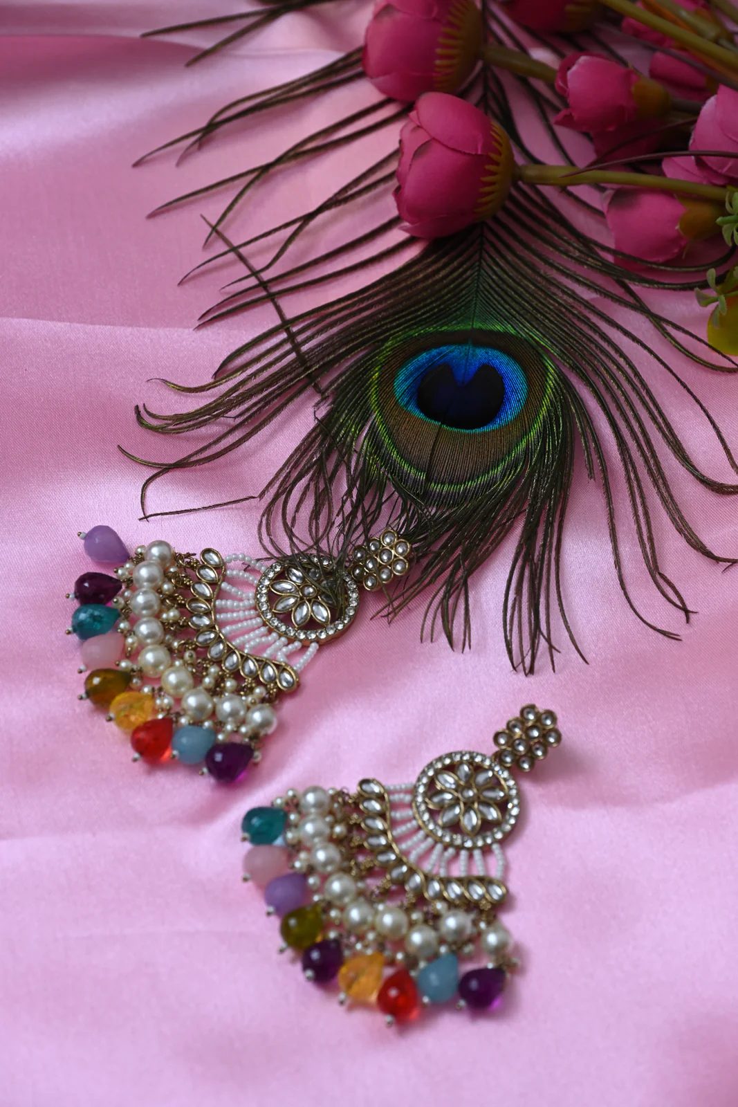 These kundan earrings are full of color and joy, just like a rainbow. The traditional design actually makes them perfect for weddings, festivals, or any celebration. They bring a bright and festive charm to your outfit in the most effortless way.
