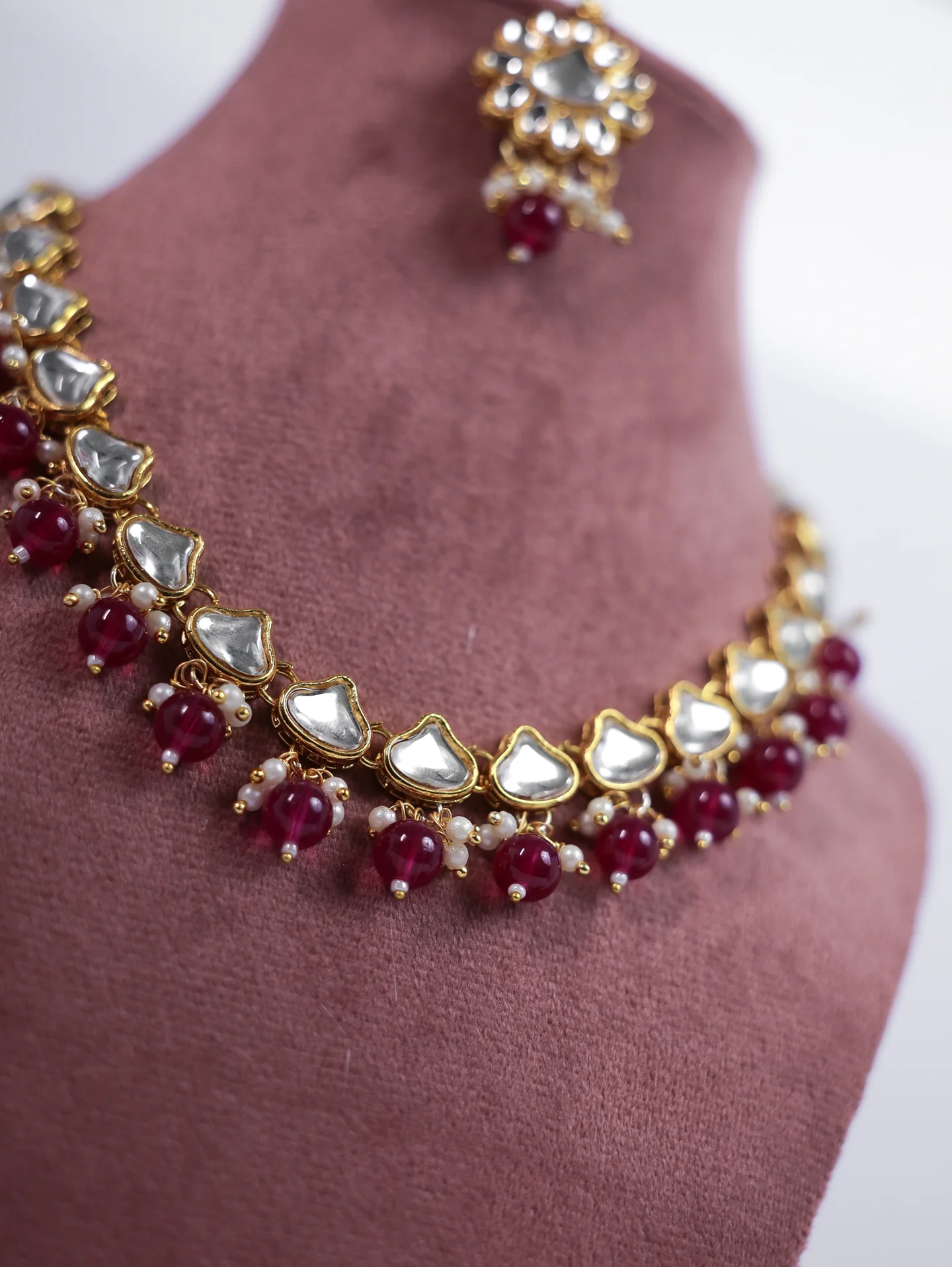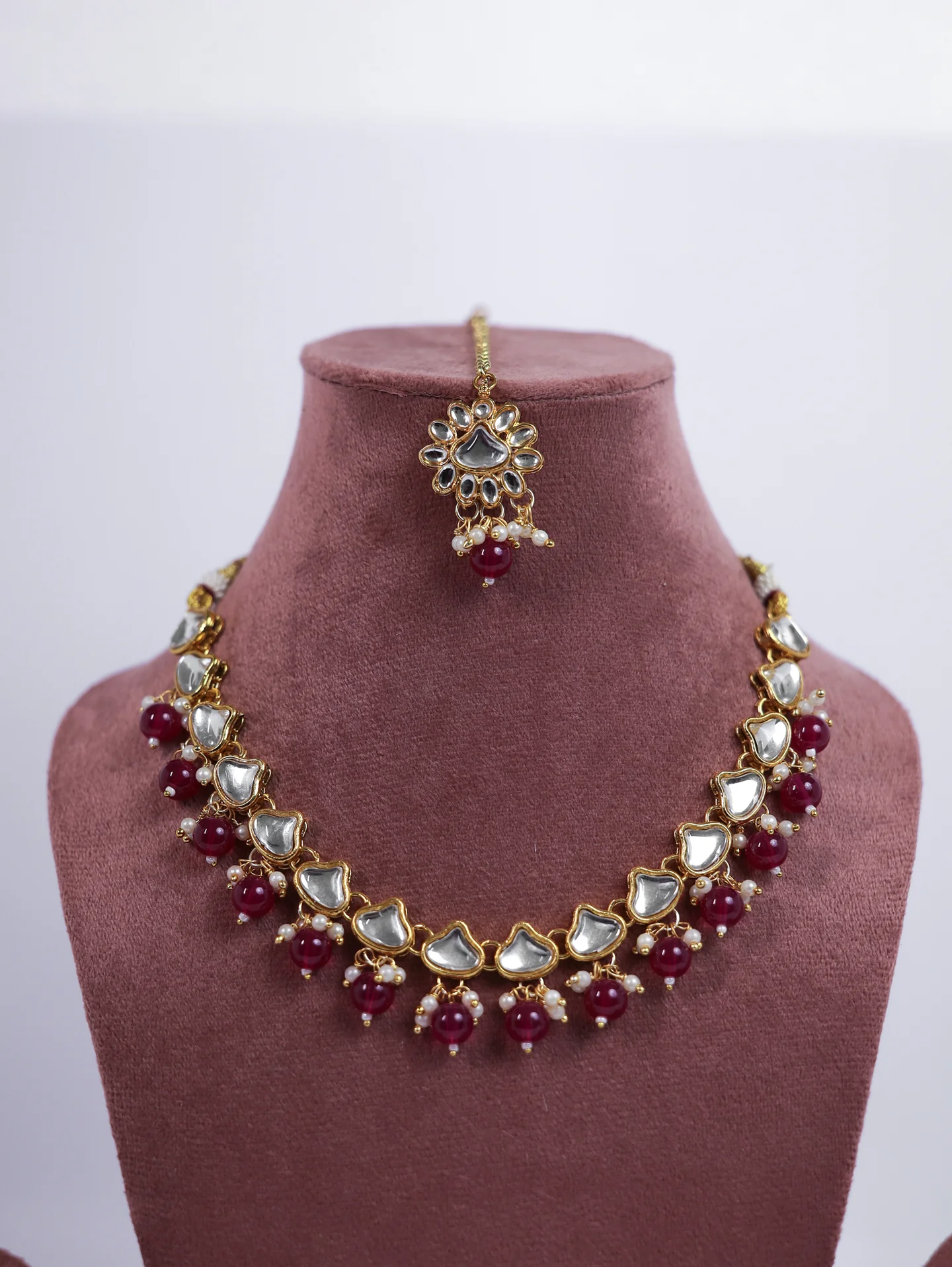 Kanika Pearl Gold Kundan ruby Necklace Set