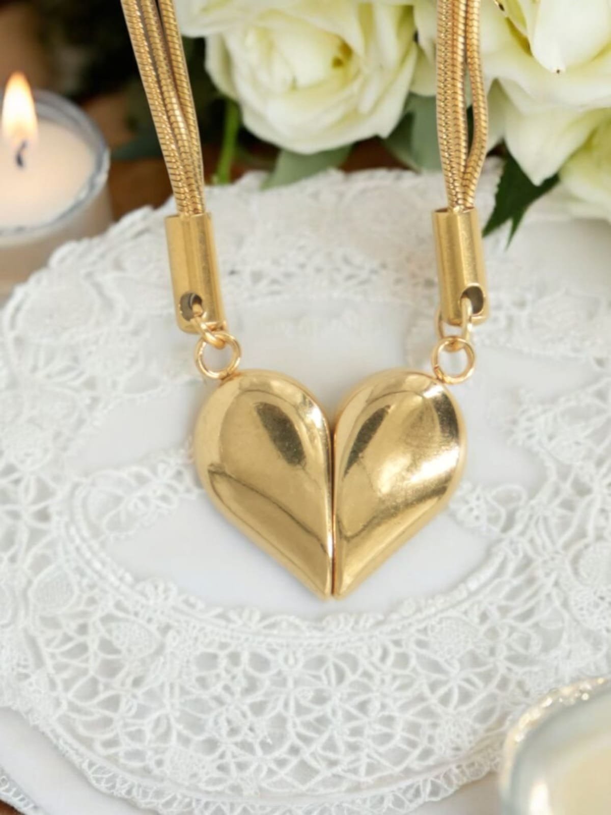 Magnetic Heart Pendant – Gold-Plated Dual Charm Necklace
