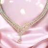 Evanna mint green and baby pink pearls necklace