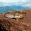 Midnight Pearl Dual Clover Charms on Triple Gold Bands