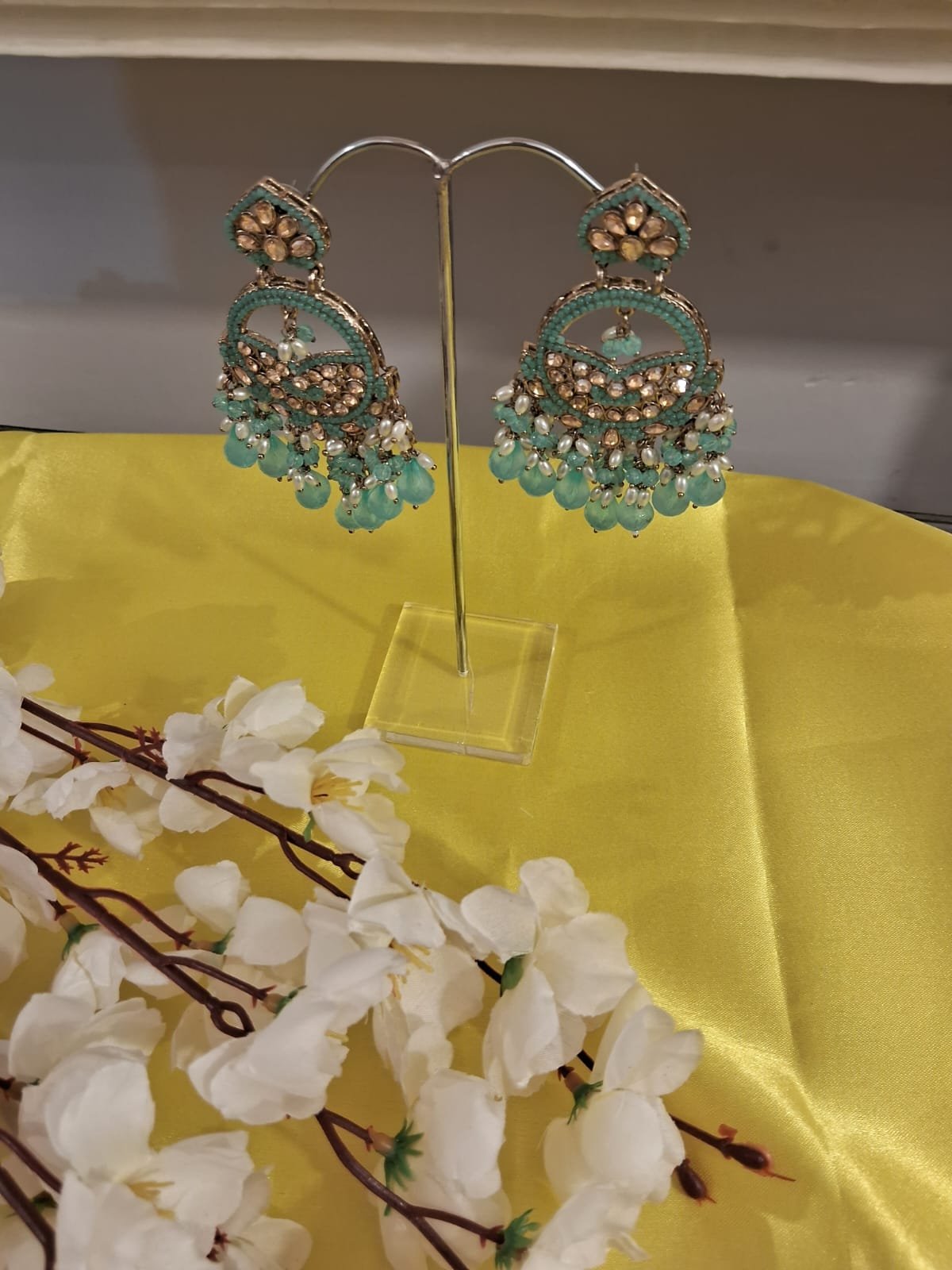 A mesmerizing mix of deep blue and pearls, these danglers hold a regal charm. Whether for a special occasion or a casual day out, they never fail to impress. Style them with a navy blue or silver outfit for a dreamy, oceanic look!