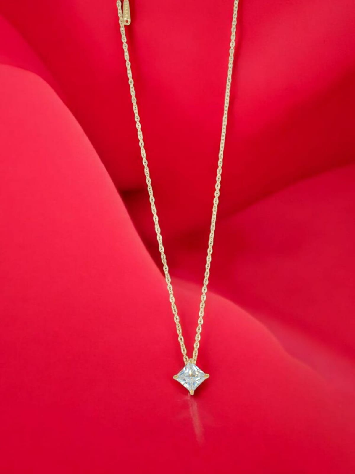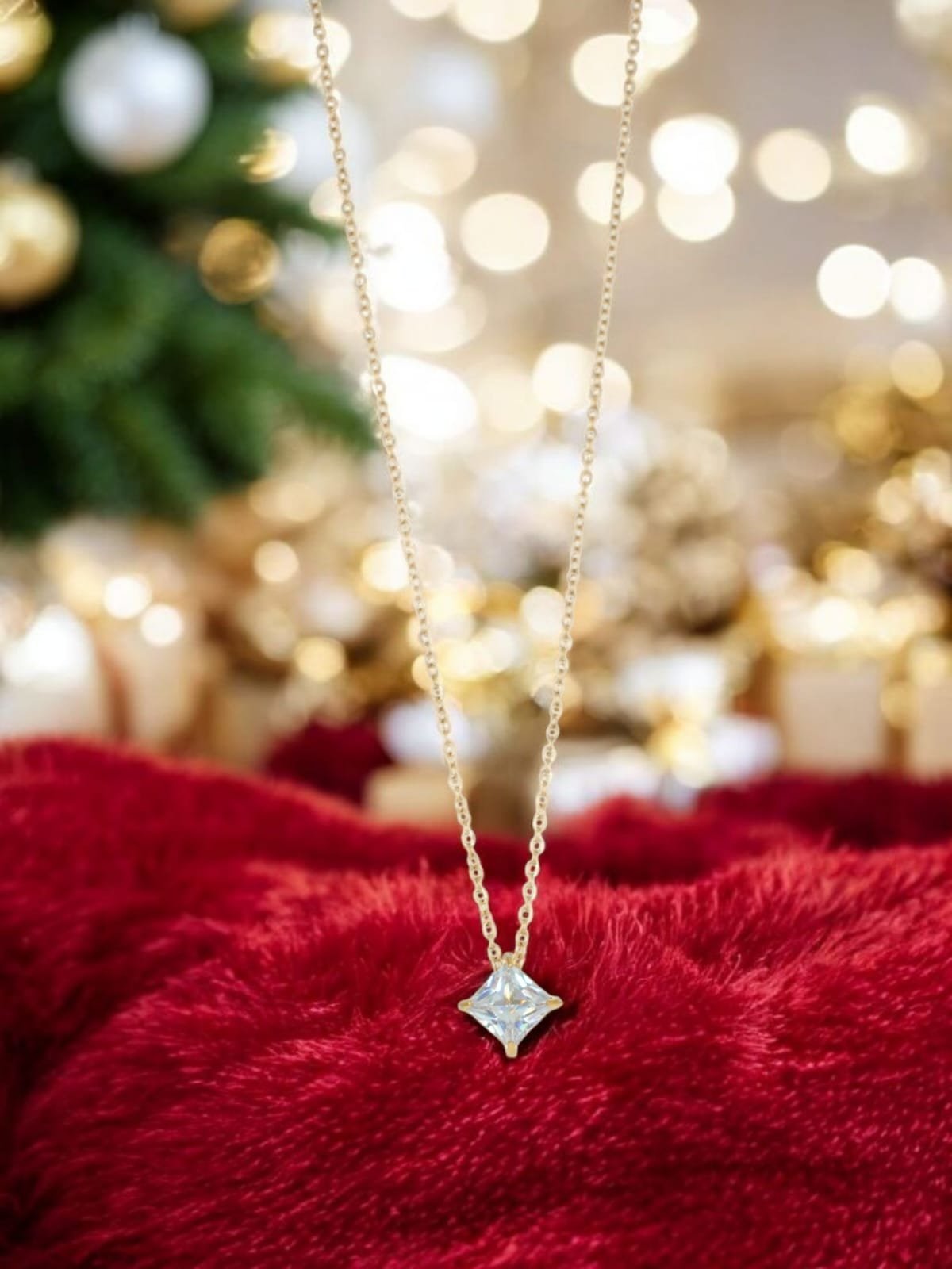 Timeless and radiant, our Princess Cut Solitaire Pendant features a dazzling square-cut crystal set in a sleek gold frame. Suspended on a smooth chain, it’s the perfect blend of classic elegance and modern charm—ideal for everyday sparkle or special occasions.