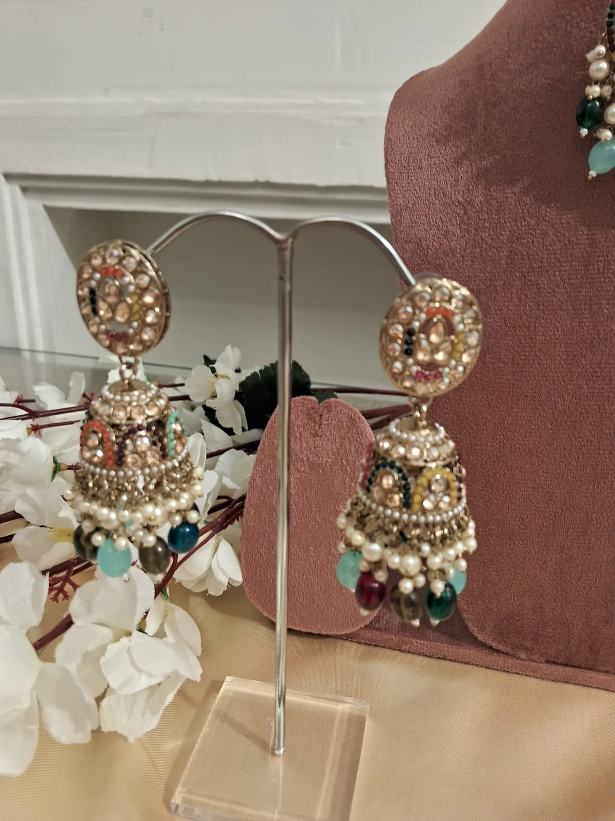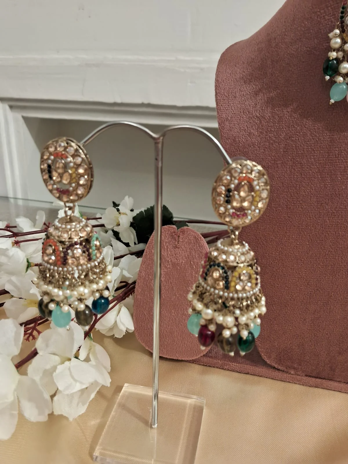 Be the first to review “Rang Mahal multicolored Jhumkis with Tikka” Cancel reply