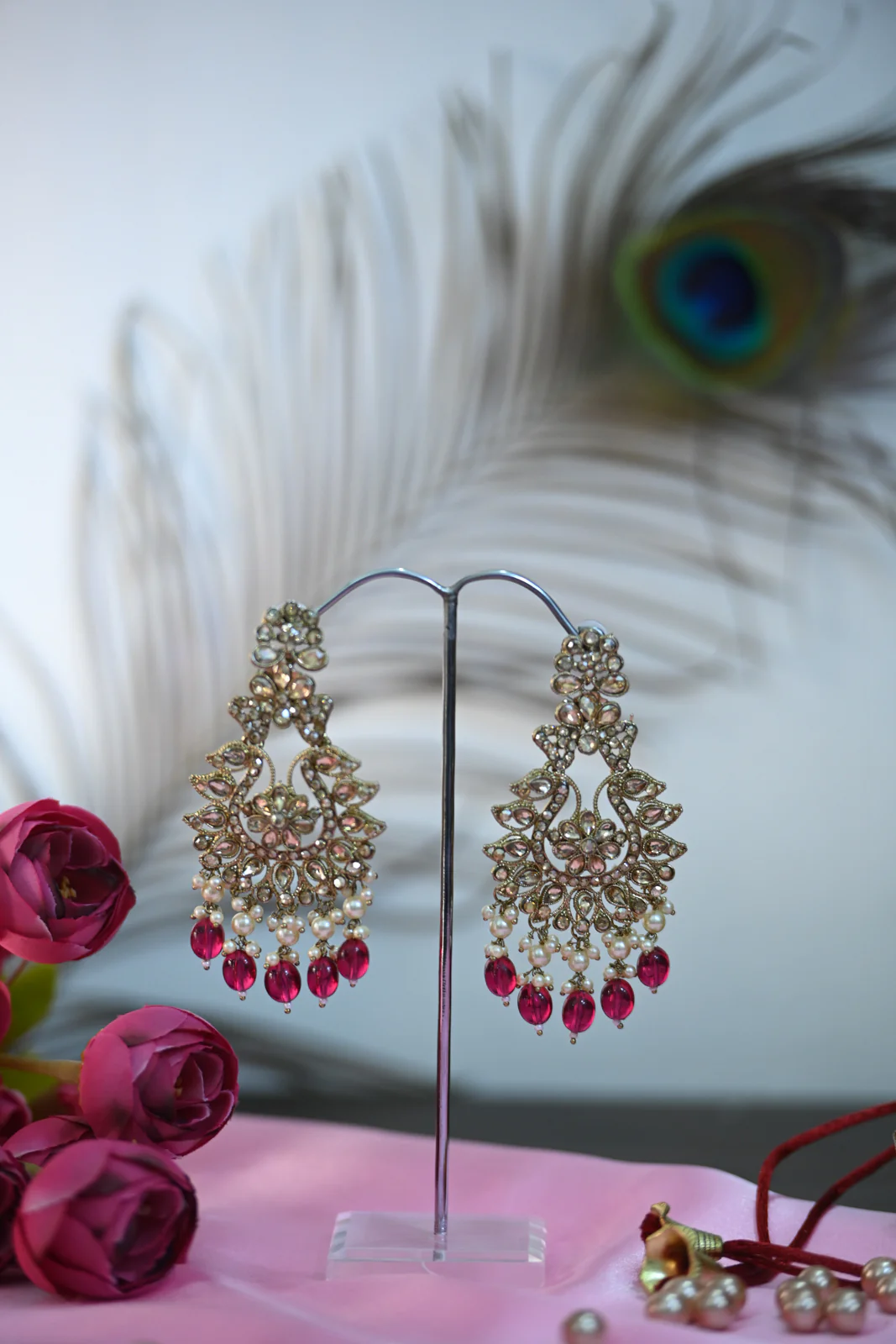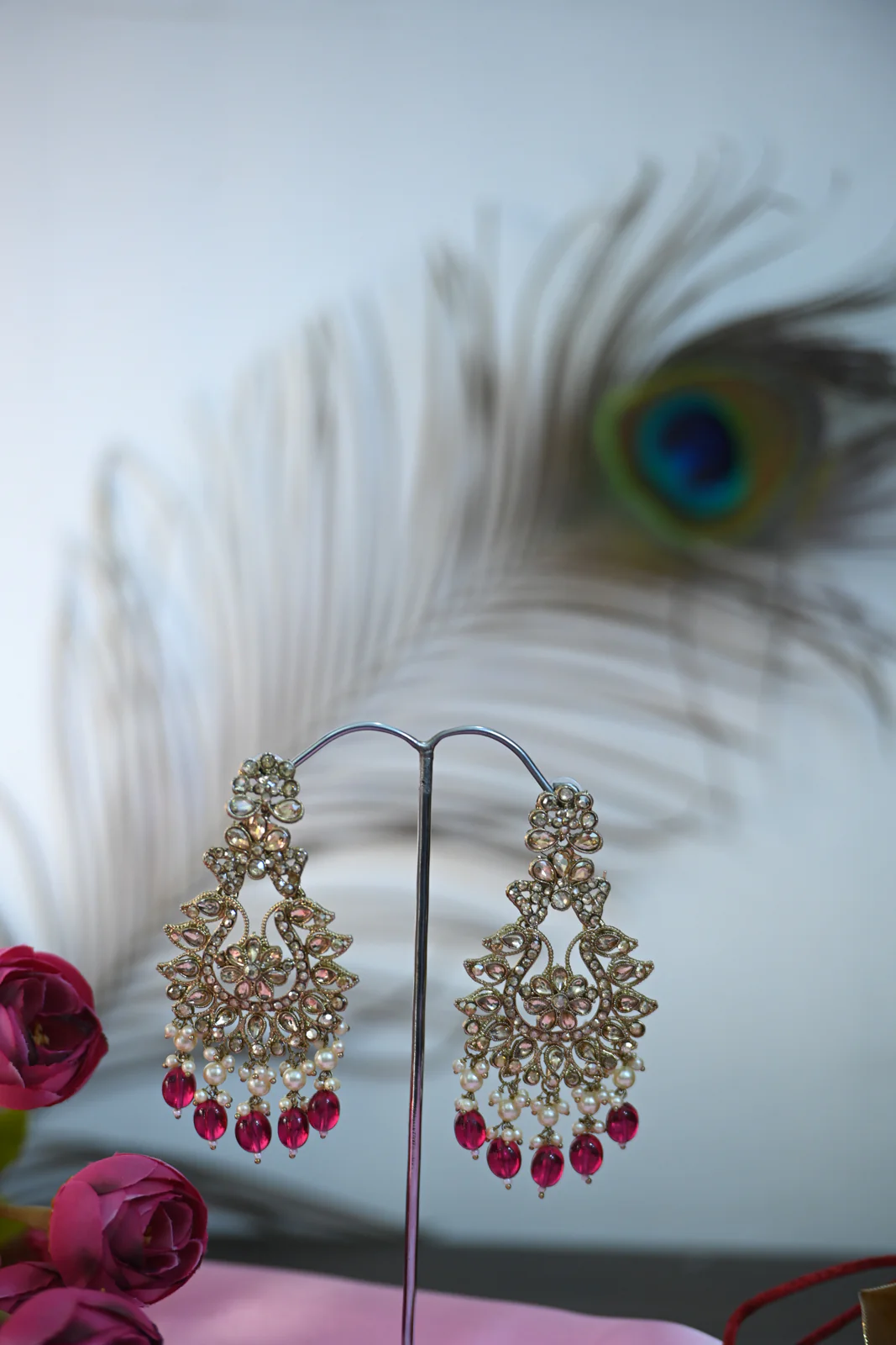Inspired by the grandeur of royal palaces, these danglers shine with intricate beauty. They bring a rich and timeless charm to any look. Pair them with a heavy silk suit or a lehenga for a luxurious feel!